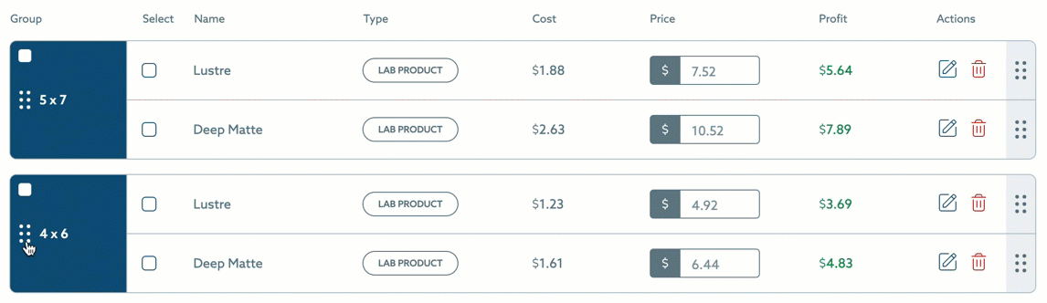Commonly Sold Items - These price sheets include the most common print sizes and items that we see studios offering through that lab. They also include the suggested markup pricing for those items. You may add or remove any items and adjust the markup once you create the price sheet.